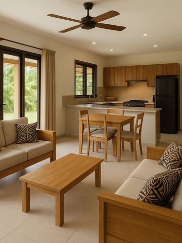 A deluxe home design that combines a modern two-bedroom unit with a private studio apartment. Perfect for families and extended living, this layout offers flexible space for guests, teenagers, or rental opportunities — blending comfort, privacy, and contemporary island style.